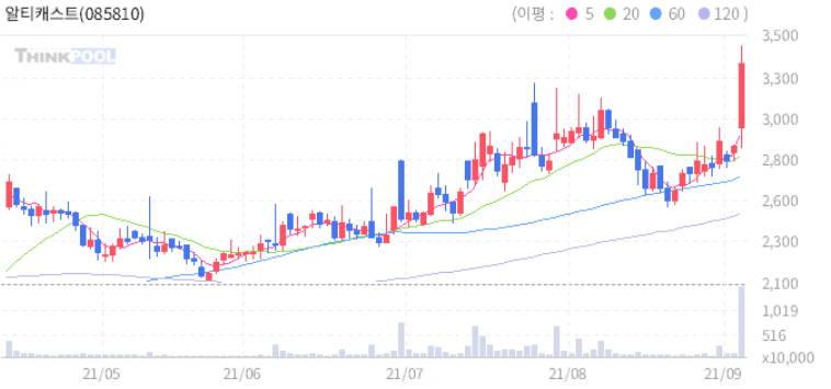 알티캐스트 : 전기차 인프라와 홍준표 테마주로 부각 추정.