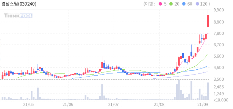 경남스틸 : 홍준표 테마주로 강세.