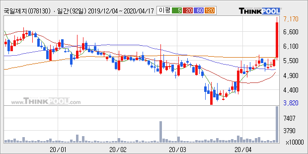 국일제지 : 자회사 그래핀 양산화 설비 기대감에 강세 추정