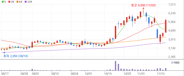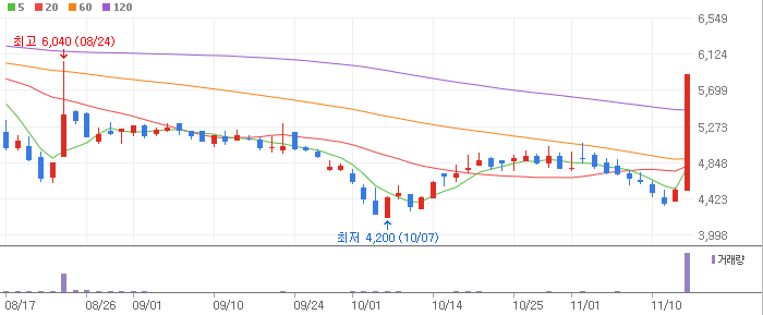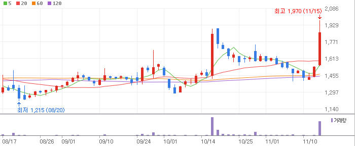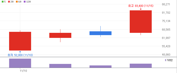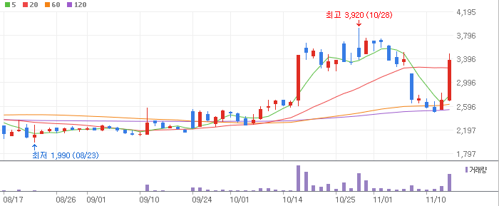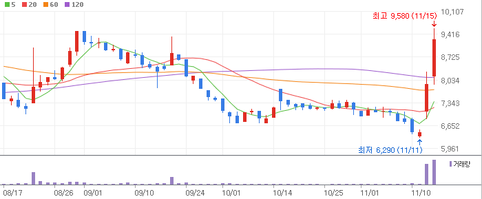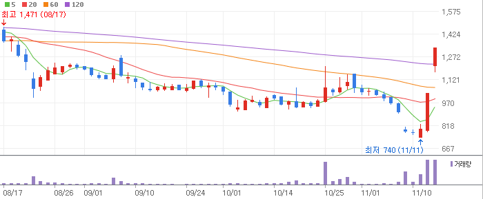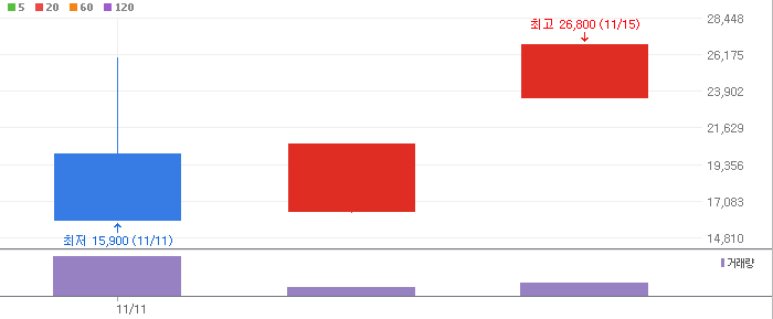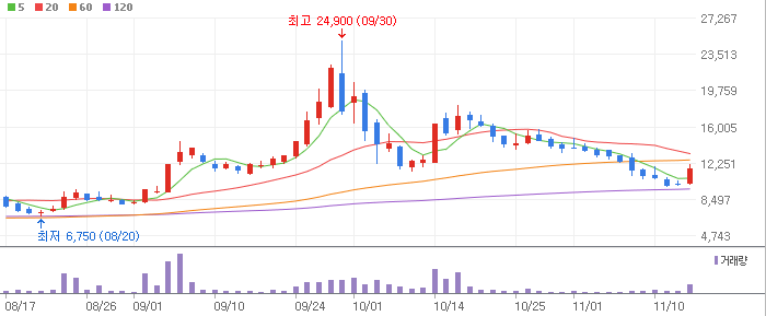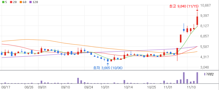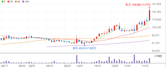 지오엘리먼트 : 11.11일 신규상장 이후 초강세