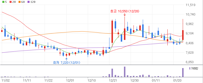| 2022.01.20 상한가 종목 분석 (오토앤, 디와이, 기산텔레콤, 제넨바이오 등) (0) | 2022.01.20 |